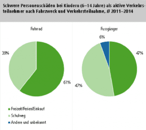 Die Anzahl Kinder, die Opfer von Verkehrsunfällen in der Schweiz werden, ist in den letzten zehn Jahren zurückgegangen, auf welche Art auch immer die Kinder unterwegs waren. Dennoch bleiben Kinder besonders verwundbare Fussgänger und Velofahrer: Über 70% der bei Verkehrsunfällen verletzten oder getöteten Kinder sind zu Fuss oder mit dem Velo unterwegs.